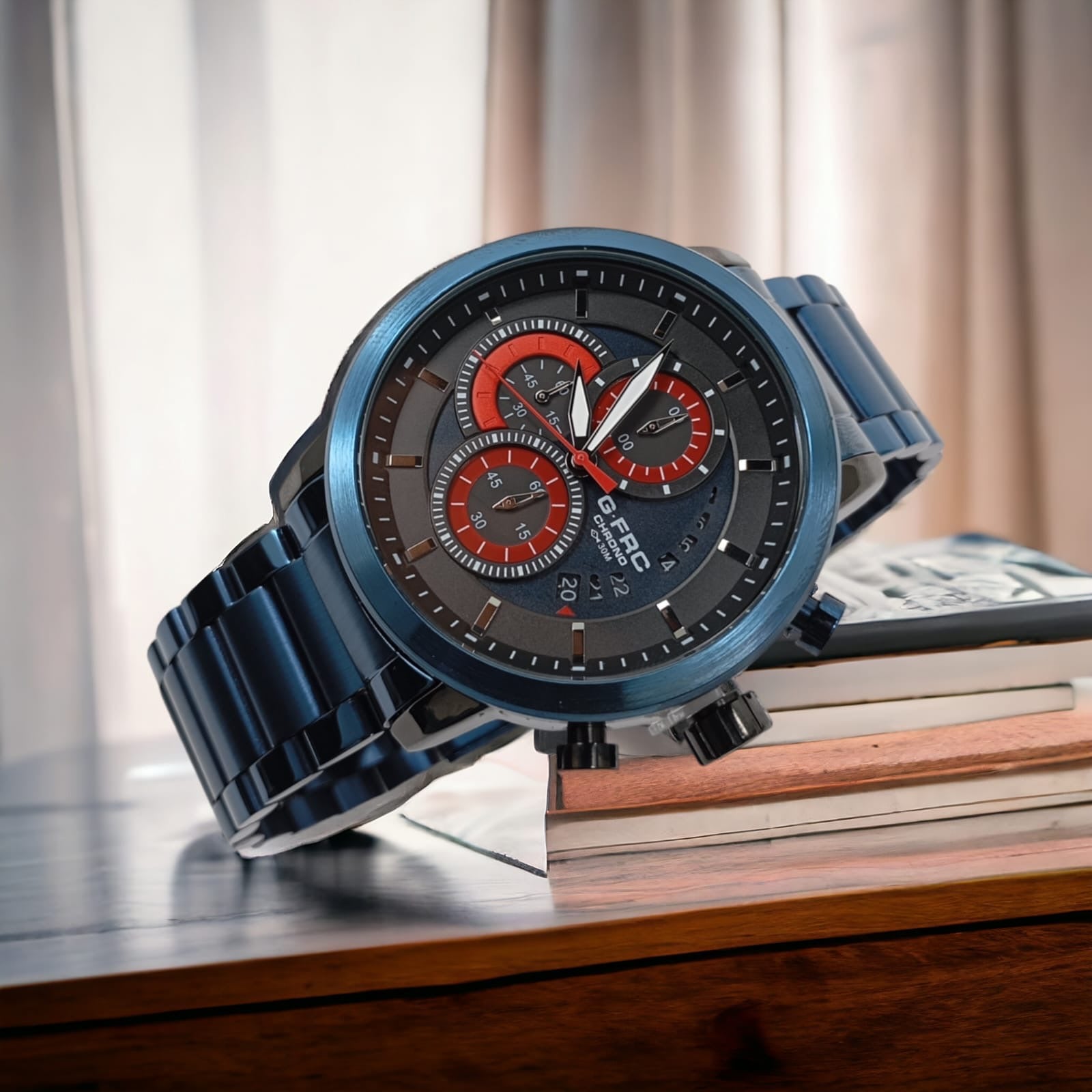 CHRONO PARA CABALLERO CALENDARIO PULSO EN ACERO.